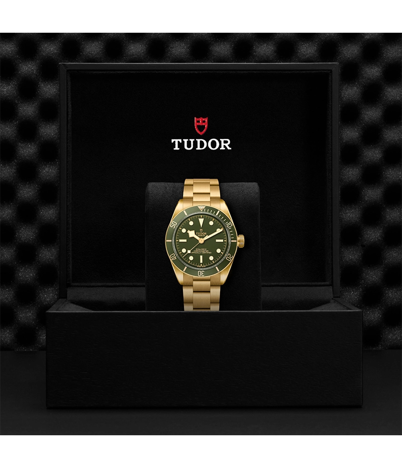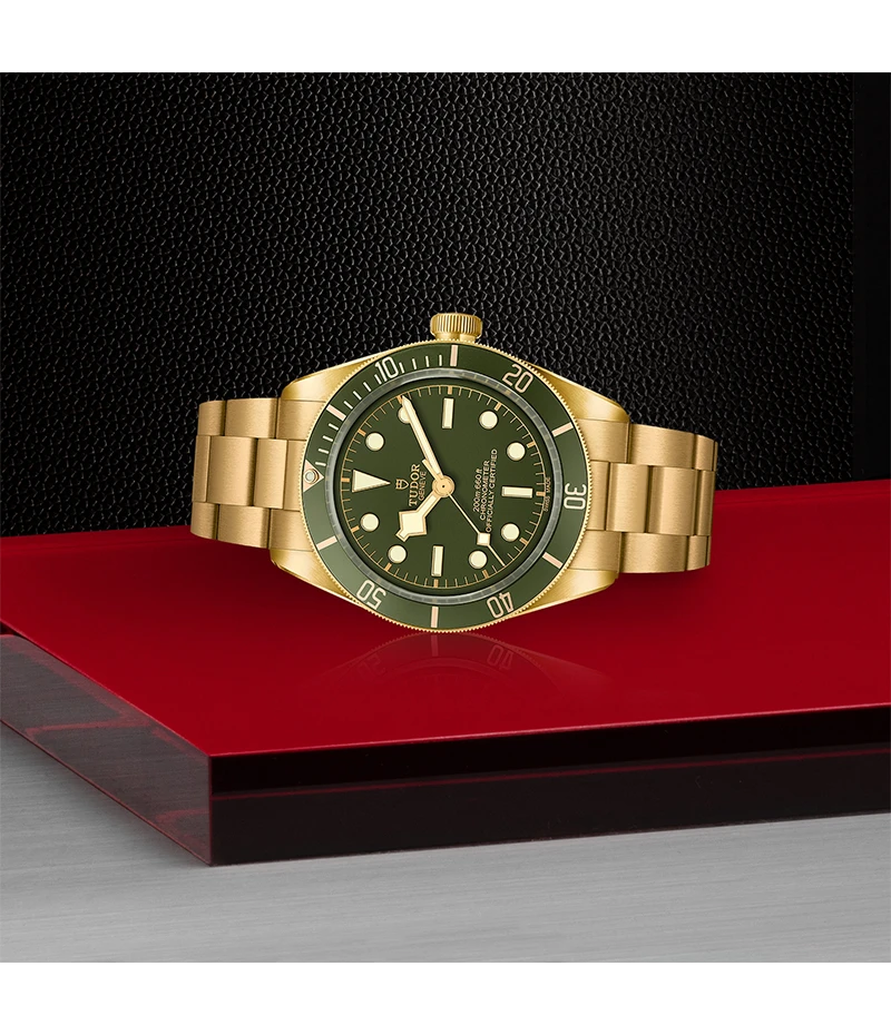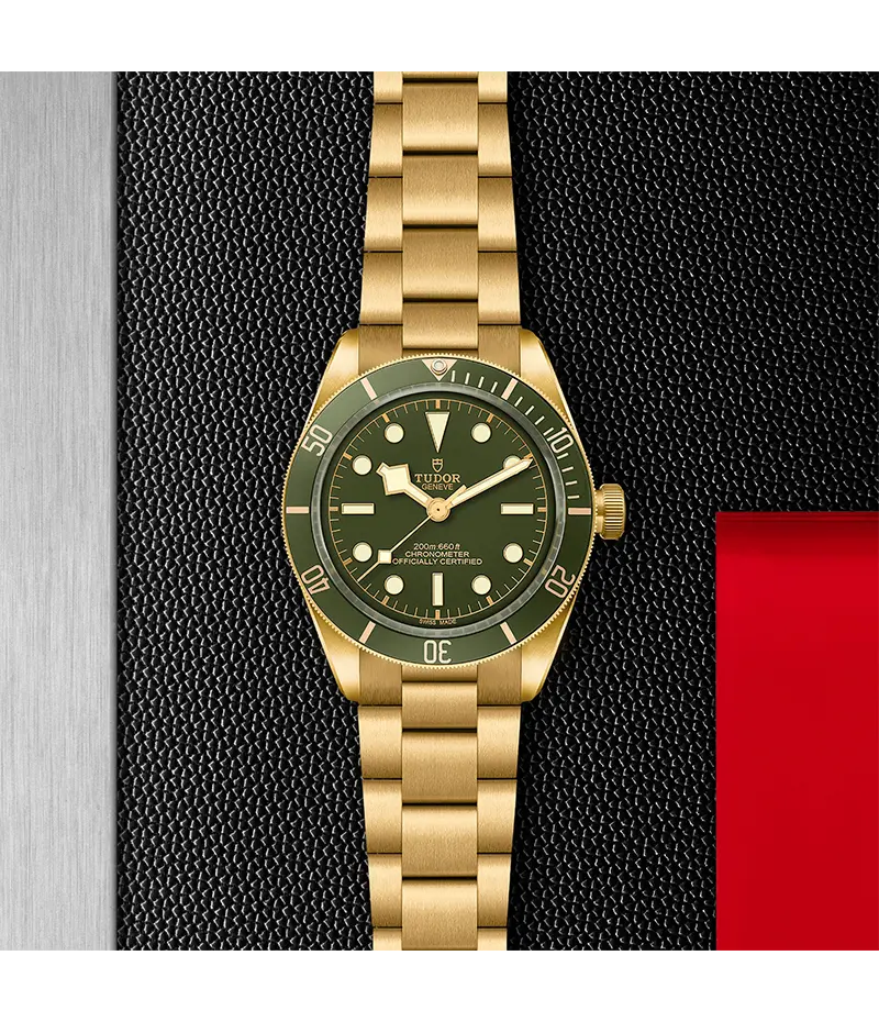 ブラックベイ 58 18Kはまた、チューダー ダイバーズウォッチの中で初めての18Kイエローゴールド製のオープンケースバックを採用したモデルです。そして新たに、サテン仕上げの18Kイエローゴールド製ブレスレットとのマッチングが可能となりました。