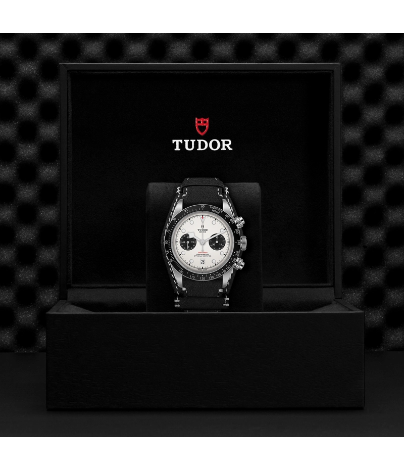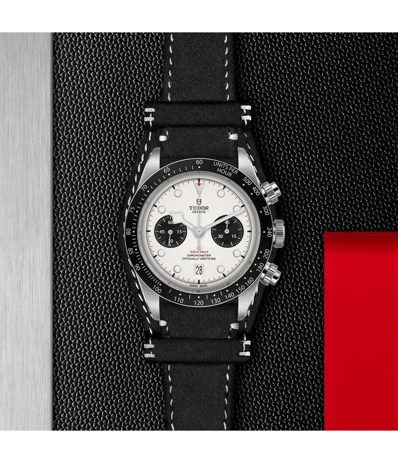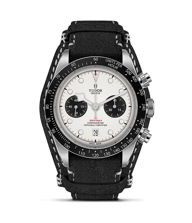 初期のチューダー クロノグラフに着想を得たプッシャーを備えたスチール製ケースや、タキメーター目盛りが刻まれたベゼルにより、このスポーティでありながらも美しいデザインが作り上げられています。