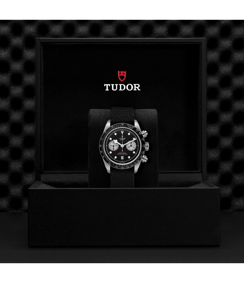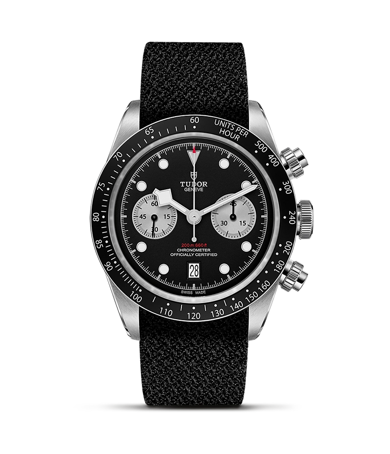 初期のチューダー クロノグラフに着想を得たプッシャーを備えたスチール製ケースや、タキメーター目盛りが刻まれたベゼルにより、このスポーティでありながらも美しいデザインが作り上げられています。