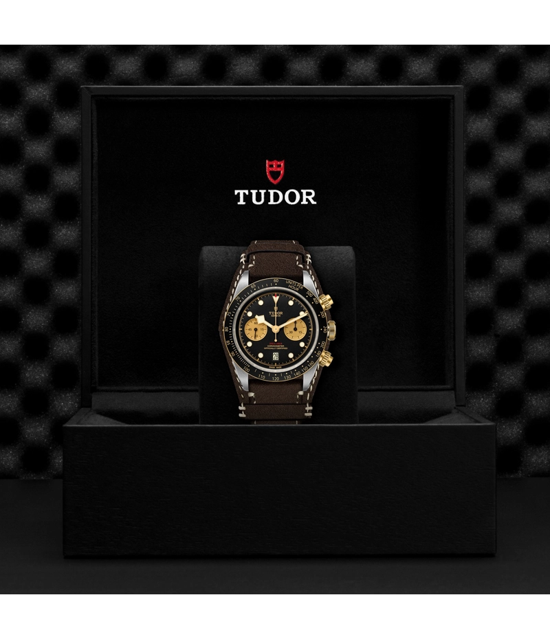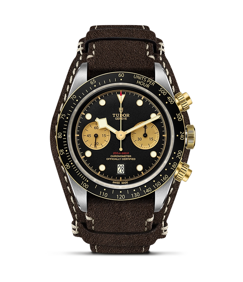 初期のチューダー クロノグラフに着想を得たプッシャーを備えたスチール製ケースや、タキメーター目盛りが刻まれたベゼルにより、このスポーティでありながらも美しいデザインが作り上げられています。