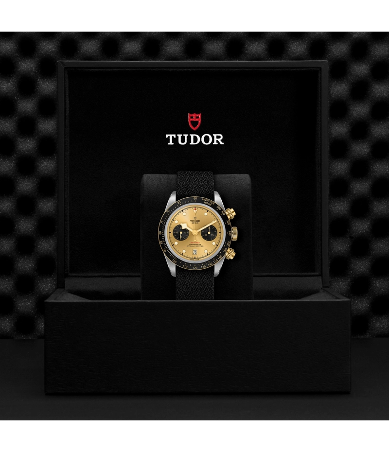 初期のチューダー クロノグラフに着想を得たプッシャーを備えたスチール製ケースや、タキメーター目盛りが刻まれたベゼルにより、このスポーティでありながらも美しいデザインが作り上げられています。