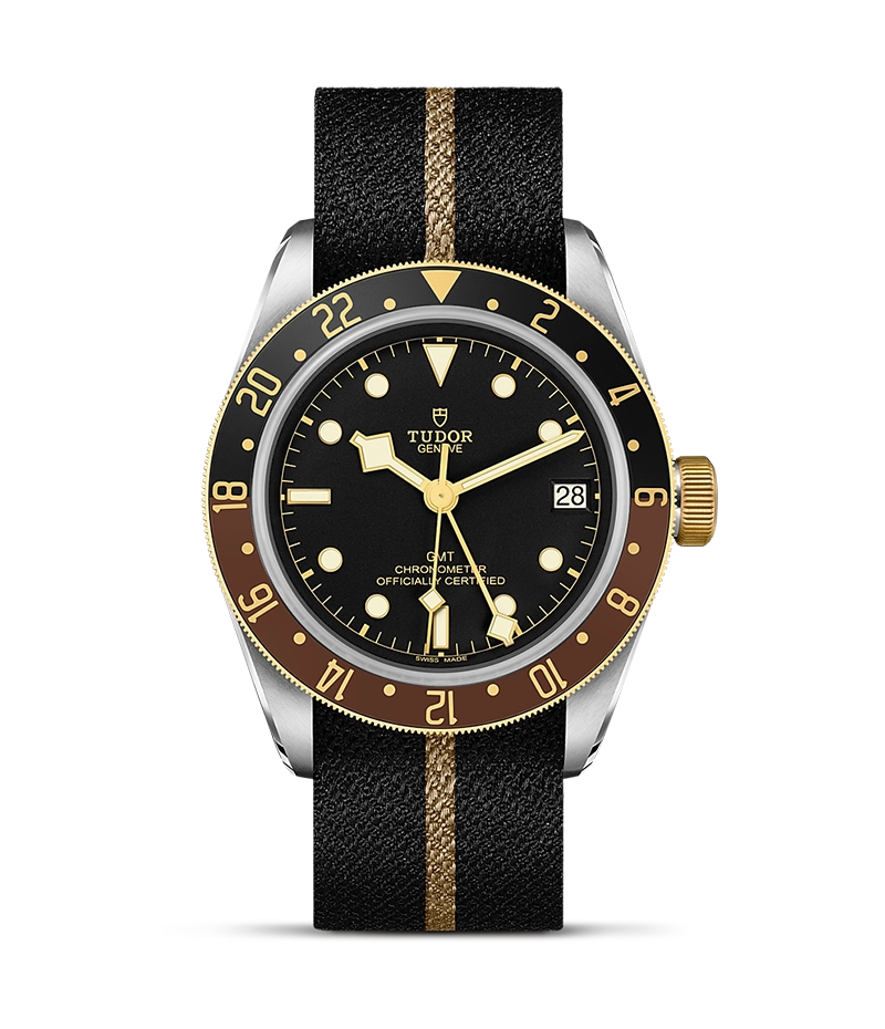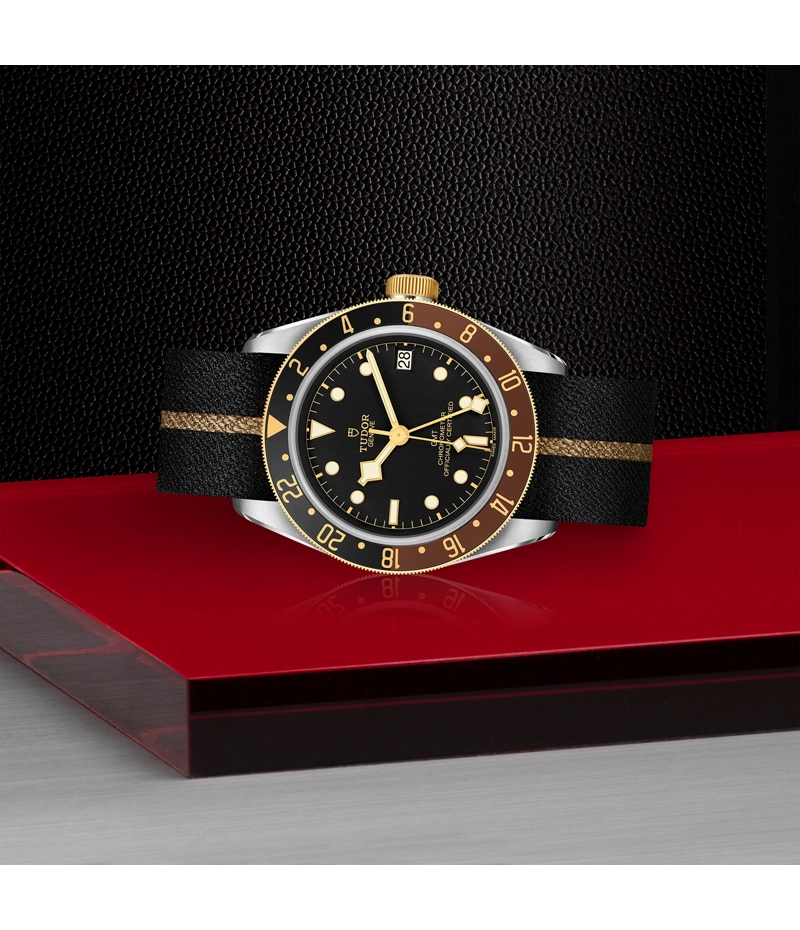 本モデルは、チューダーのアイコンモデル、ブラックベイ GMTに温かみのある配色とノスタルジックな佇まいが印象的なS&G(スチール&ゴールド)バージョン。デイ&ナイトを表現した2トーンの24時間目盛り付き回転ベゼルが存在感を放つ本モデルは、歴史ある時計機能を繊細な美しさで讃えています。