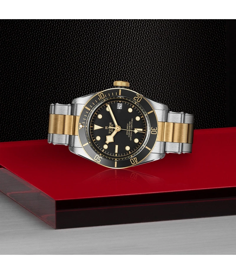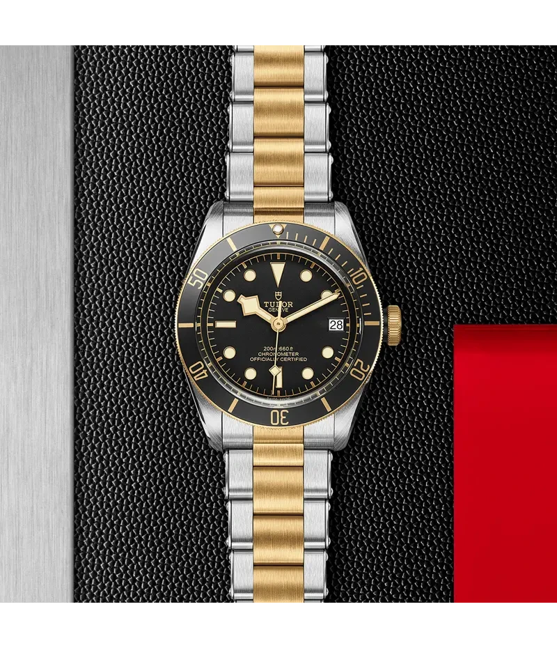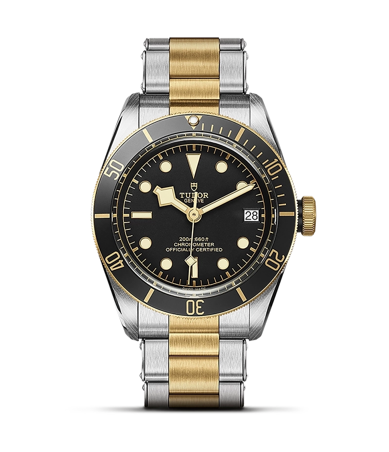 スチール&ゴールドを意味するS&Gと名付けられたブラックベイ。ドーム型ダイアルやクリスタルと同様に、全体的なフォルムは初期のチューダー ダイバーズウォッチに由来するものです。