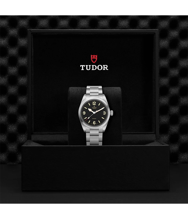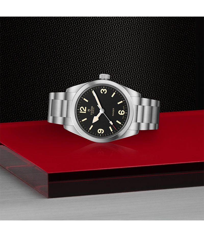 36 mmサイズのブラッシュ仕上げ、ステンレススチール製ケース、マニュファクチュール「キャリバー MT5400」、そしてマットブラックのダイアルを備えるレンジャーモデルは、探検時計の精神を永続させます。